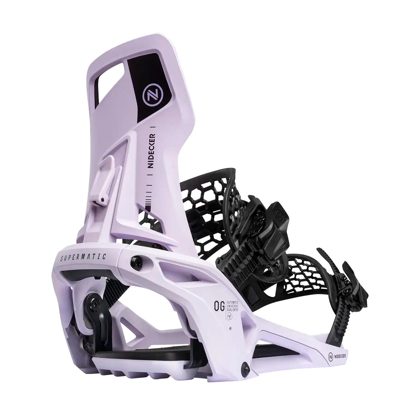 OG Supermatic er den originale utgaven og verdens første automatiske binding som kan brukes med alle snowboardboots uansett merke. Skyv foten inn bakfra, tråkk ned på hælpedalen for å vippe highbacken opp og kjør avgårde. En enkel utløserhendel gjør det like rask å komme seg ut av bindingen uten å måtte løsne opp stropper.
