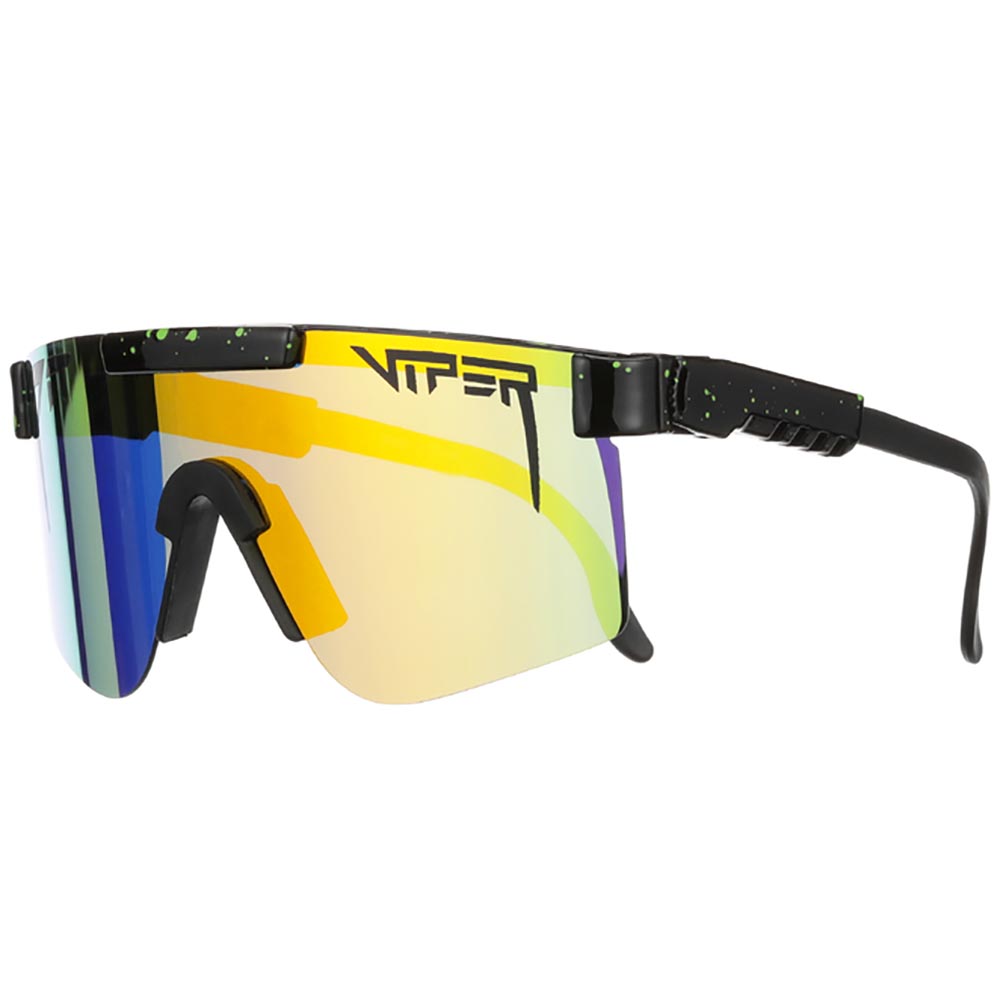 Hypet opp på to ulike energidrikker har Pit Viper laget Monster Bull. Sort ramme, neon grønn splatter-mønster og den mørkeste, polariserte linsen de har.