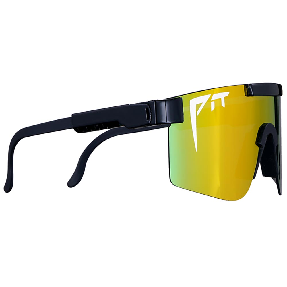Pit Viper-solbrille med polarisert linse som demper gjenskinn fra glatte overflater som vann, snø og asfalt, kul speillinse i Rainbow Mirror. Så ingen helt kan være sikker på hva du egentlig ser på. Mørk og mystisk.