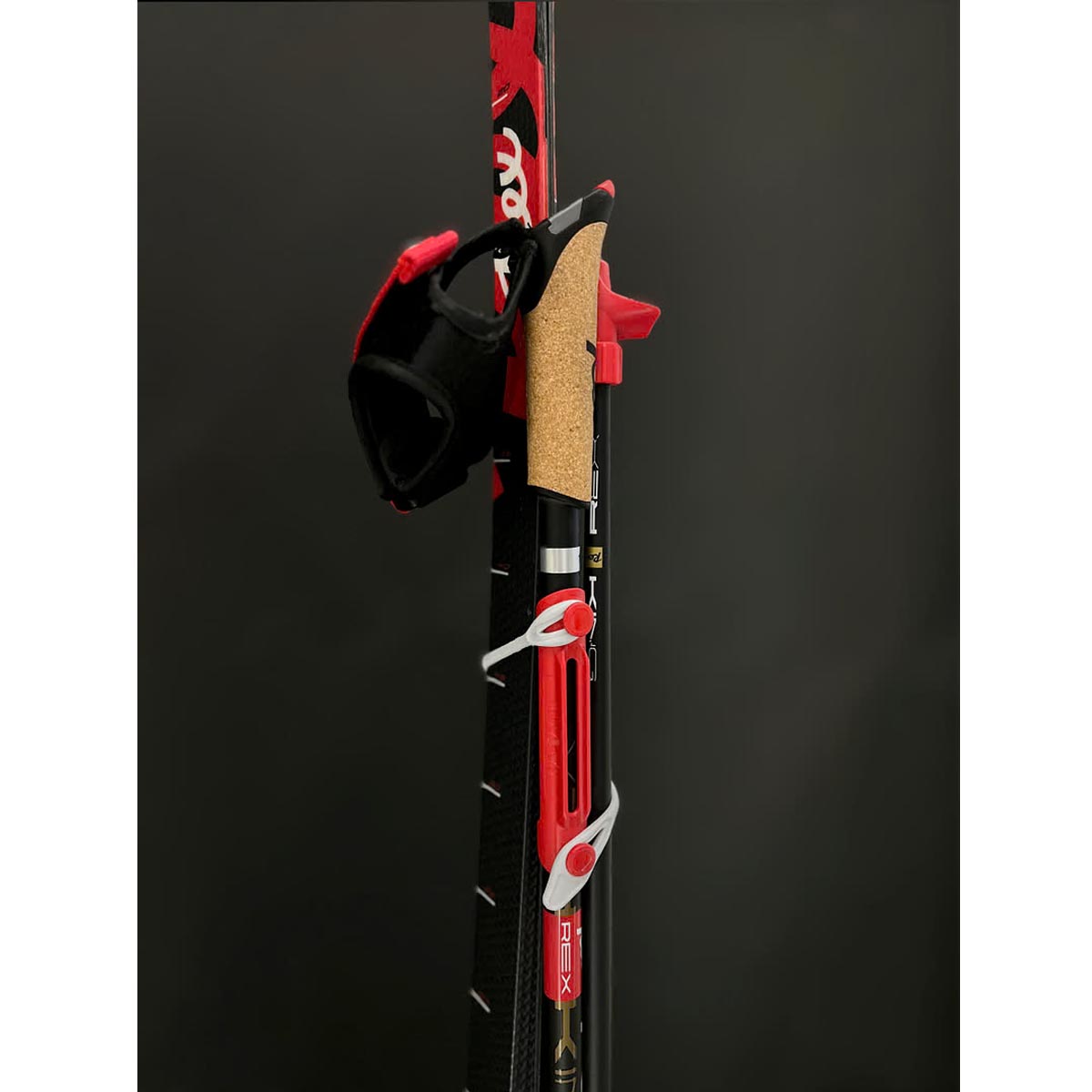 Passer til de aller fleste skistaver med diameter Ø16-18mm. Enkel og rask å bruke. Klikk Lyly Ski Strap fast i stavene og fest deretter stroppene rundt ski og staver for å samle dem.