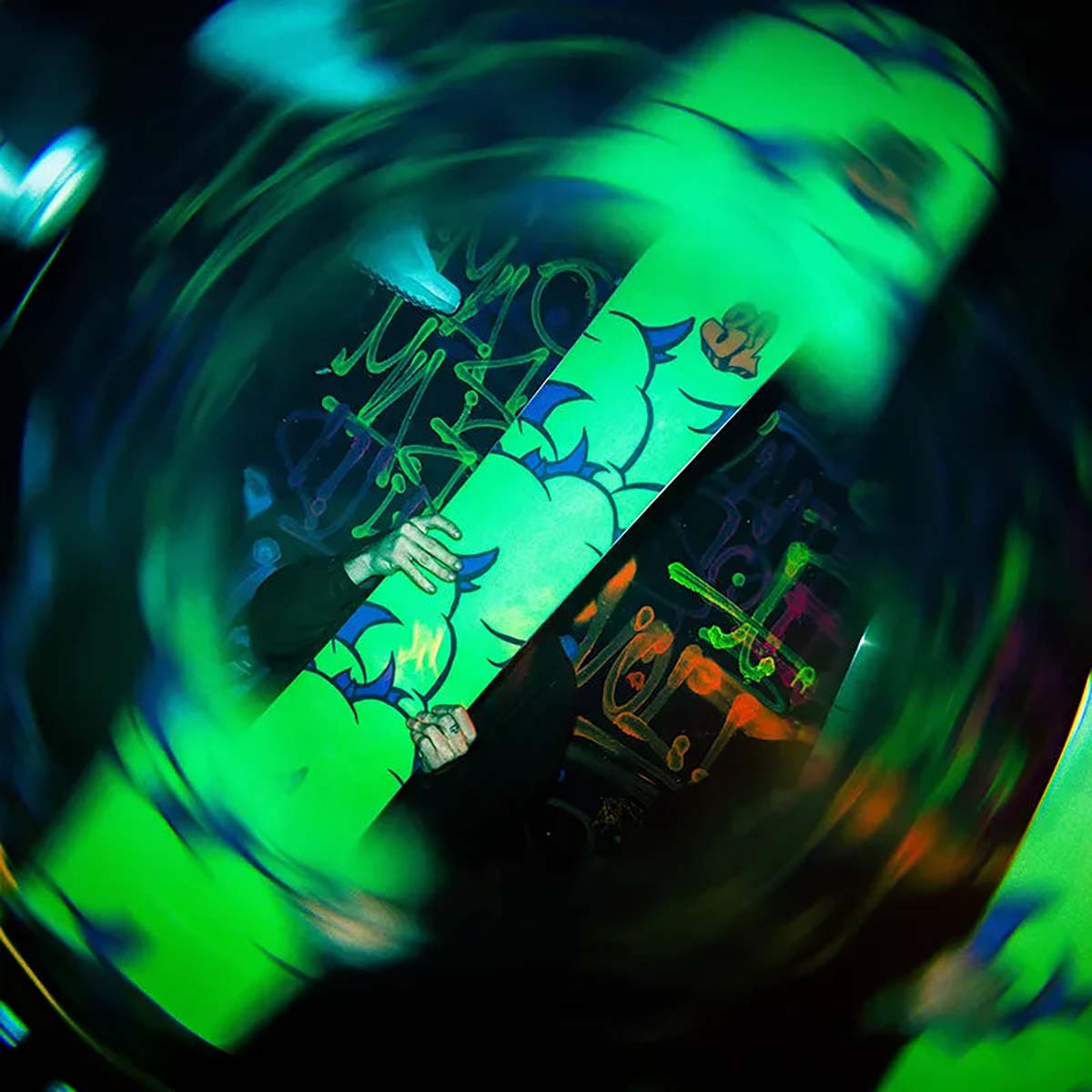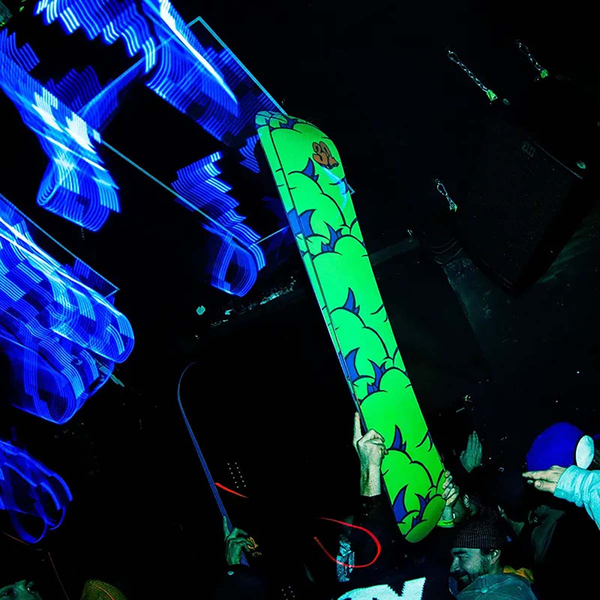 Dave Doman står for grafikken på brettet. Den Salt Lake City-baserte kunstneren er en mangeårig drivkraft innen snowboarddesign, kjent for sin graffiti-inspirerte stil som er lett gjenkjennelig med sterke farger og lekne monstre. Verkene hans har også prydet Technine og Nitro Snowboards.