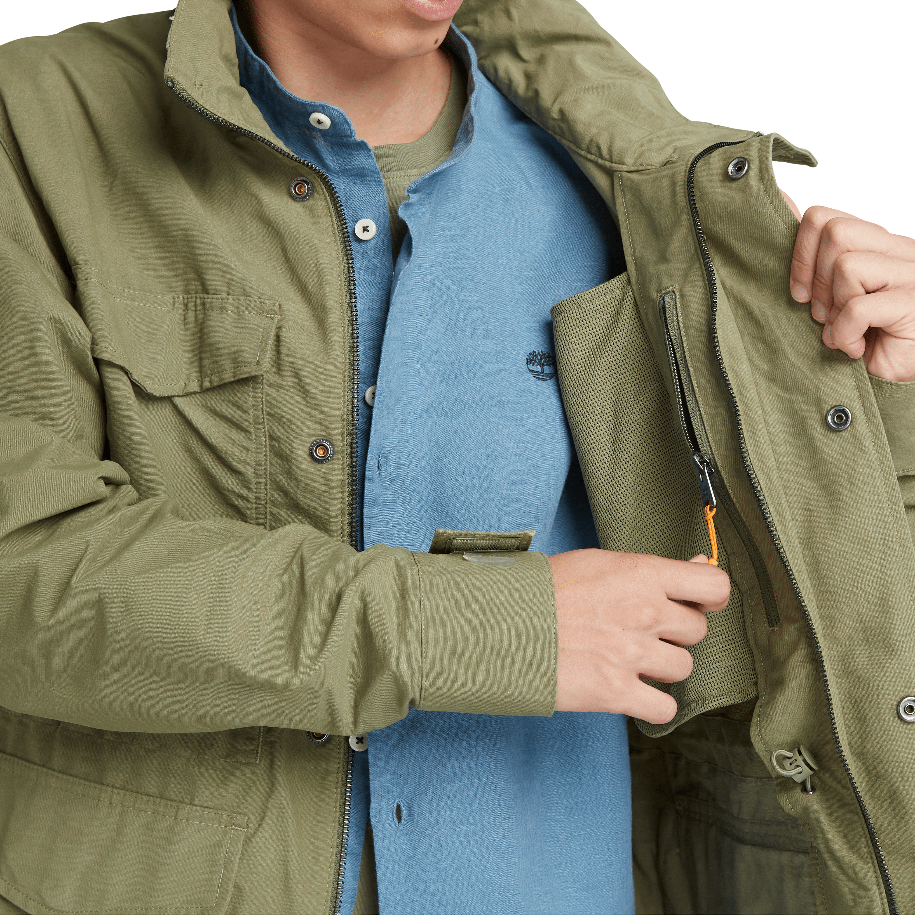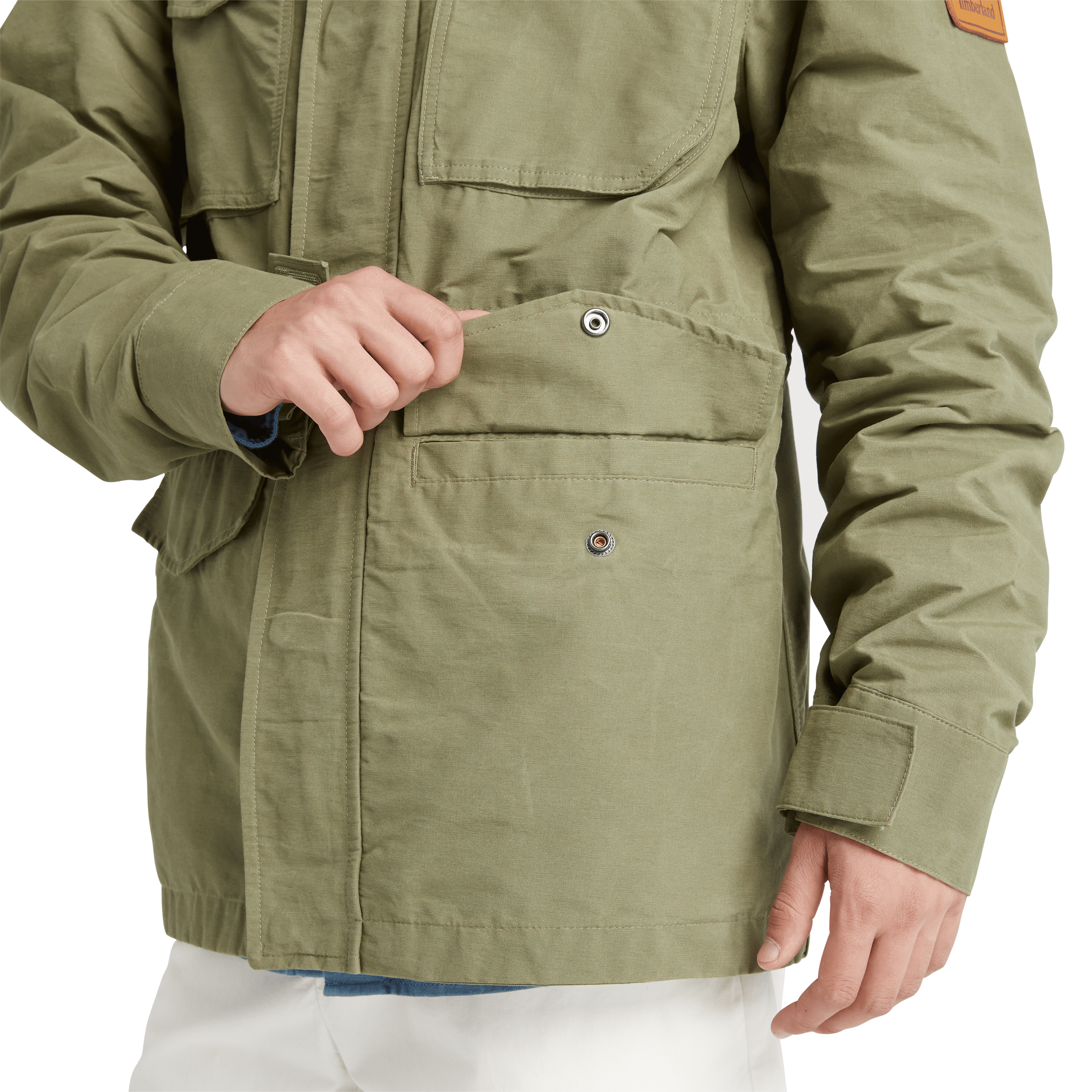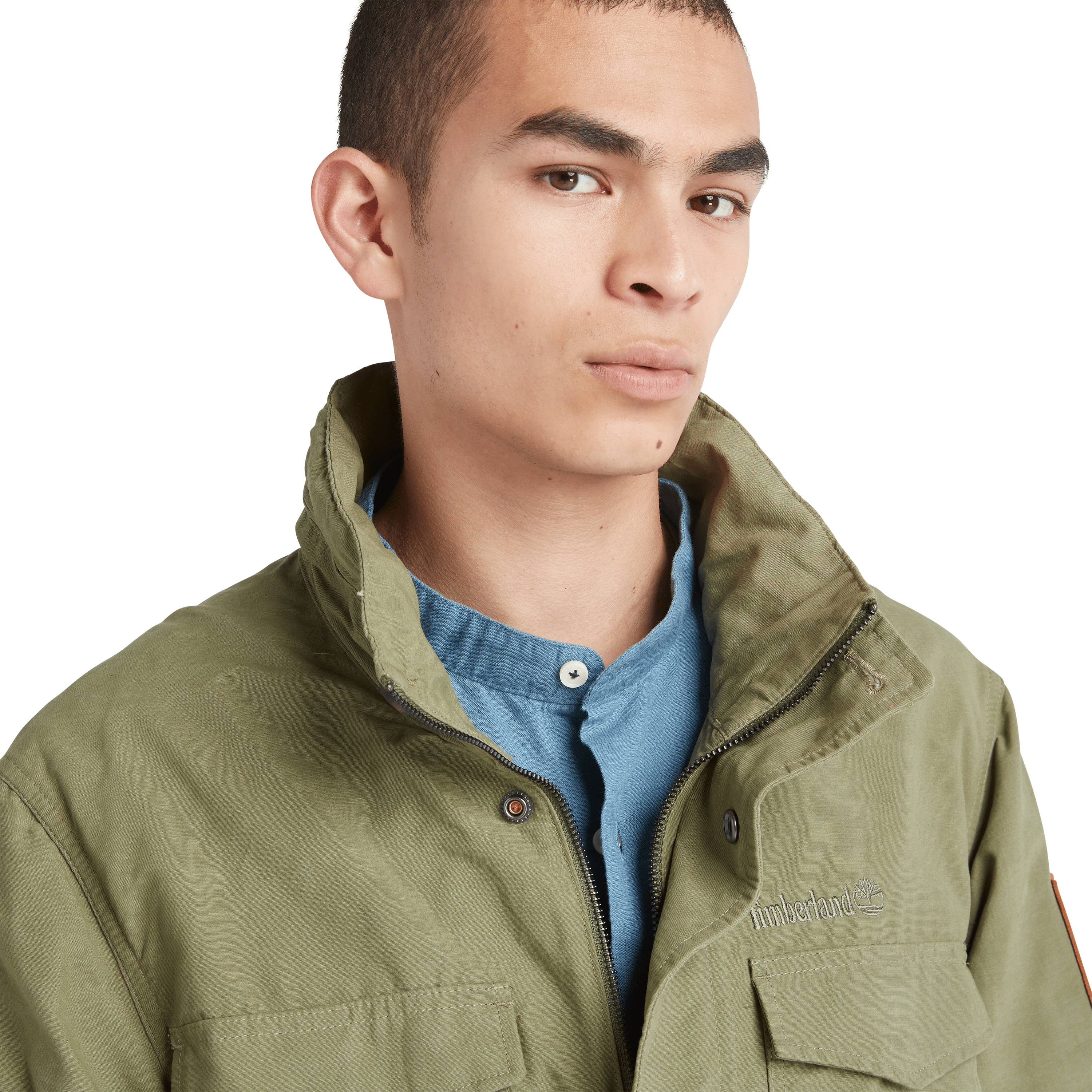 Timberland sin DWR Cotton Field Jacket er en robust og vannavvisende jakke med teipede sømmer på utsatte plasser.