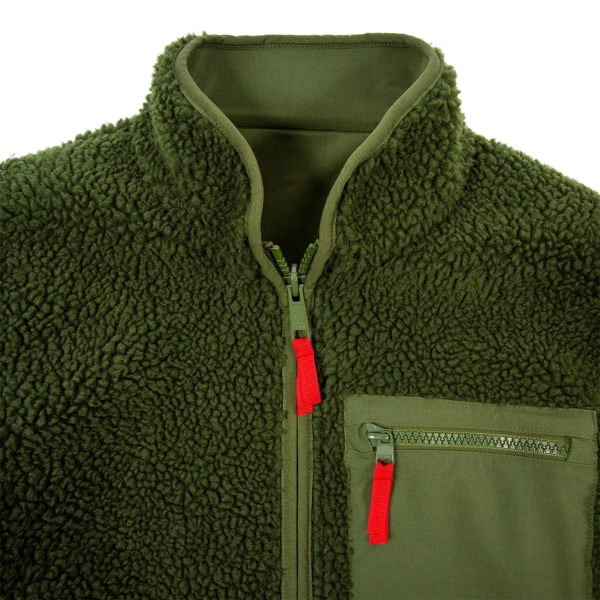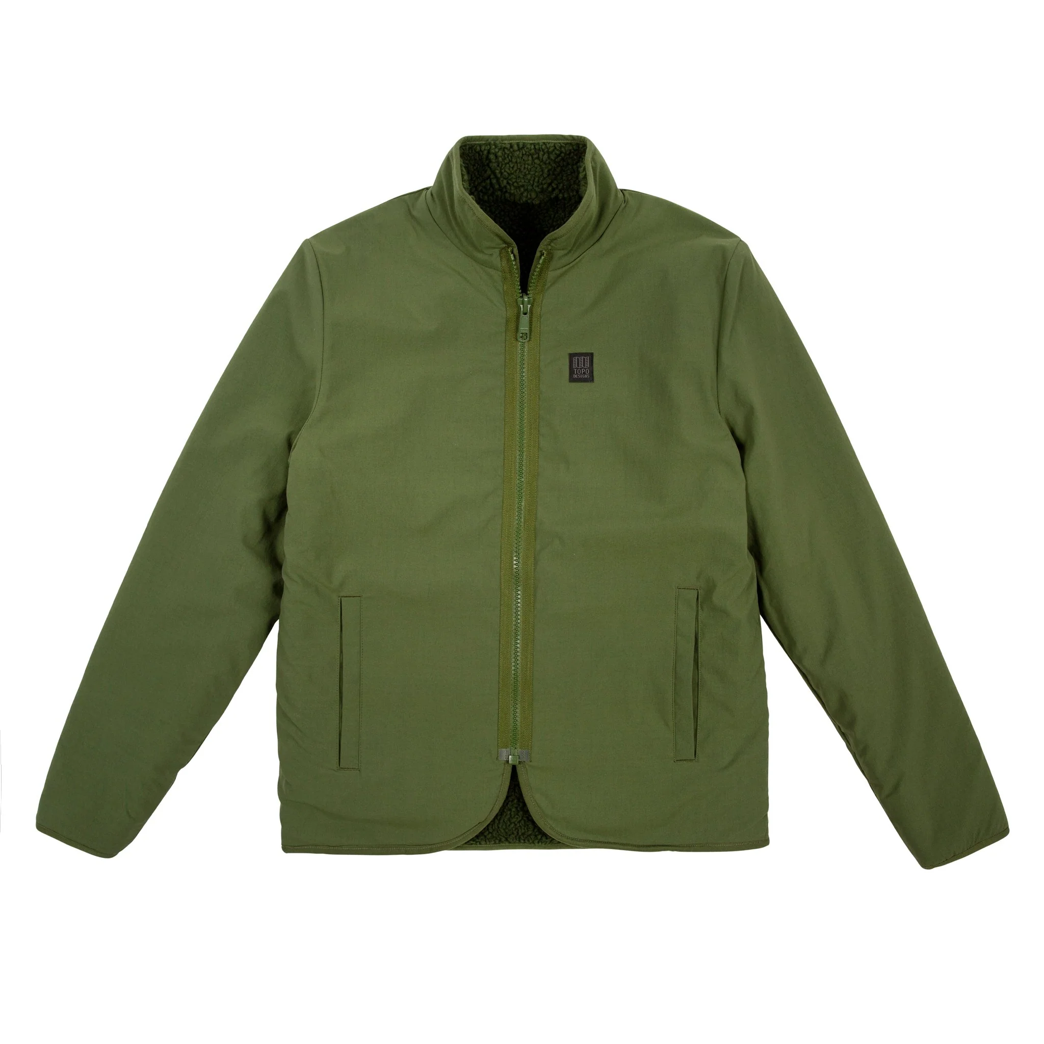 Innsiden ut, eller utsiden inn. Topo Designs Sherpa Jacket kan snus og brukes med begge sider ut, kort sagt en reversibel jakke. Begge sider har lommer med YKK-glidelås.