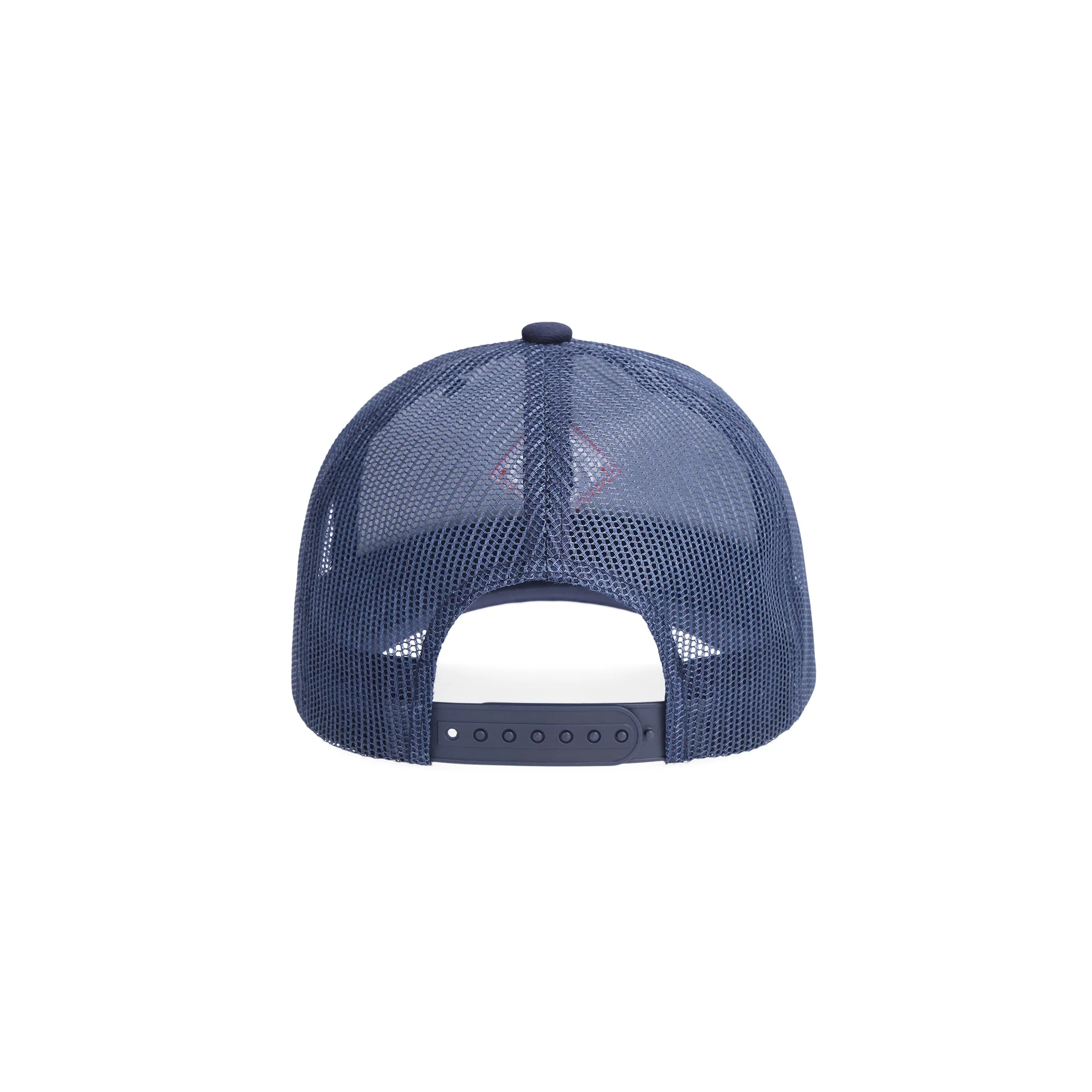 5-panel konstruksjon med mesh-panel og brem med bøy. One Size med justering av passform med snapback. Brodert logo i front.