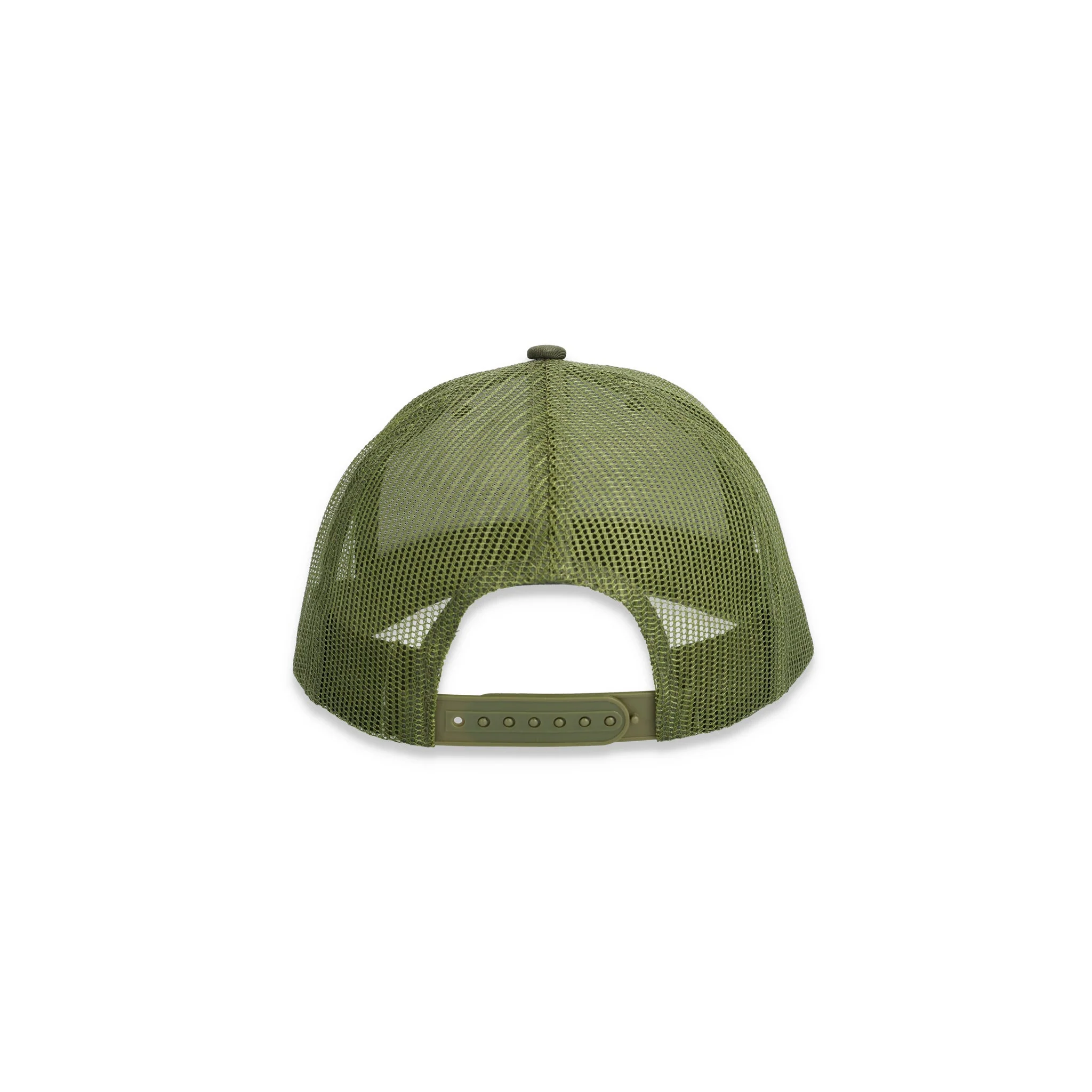 6-panel konstruksjon med mesh-panel og snapback for justering av passform. Topo Designs logo-patch i front.