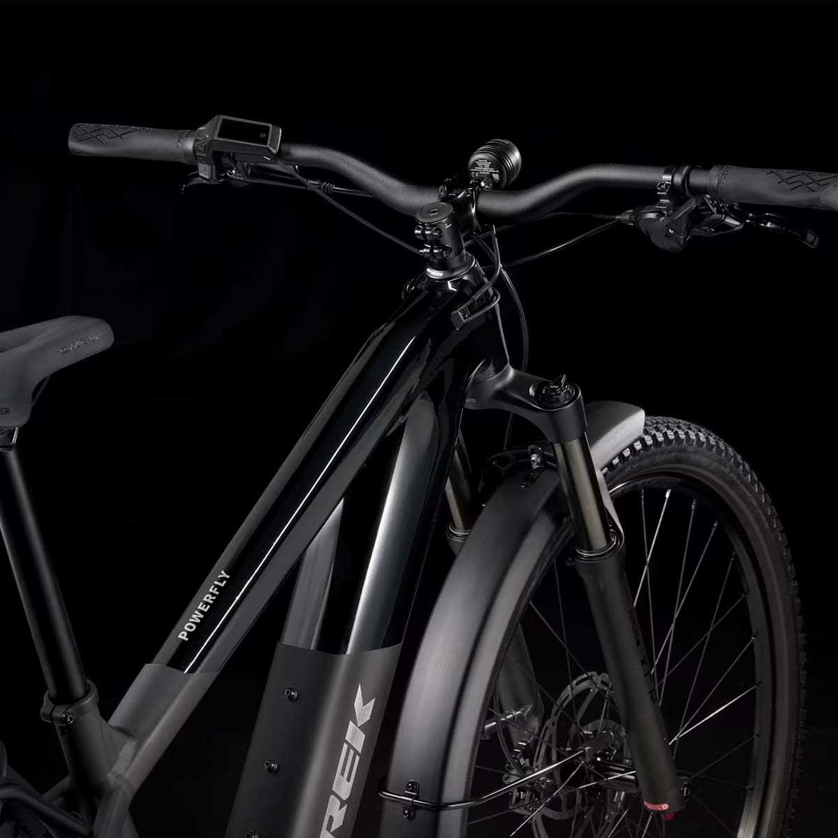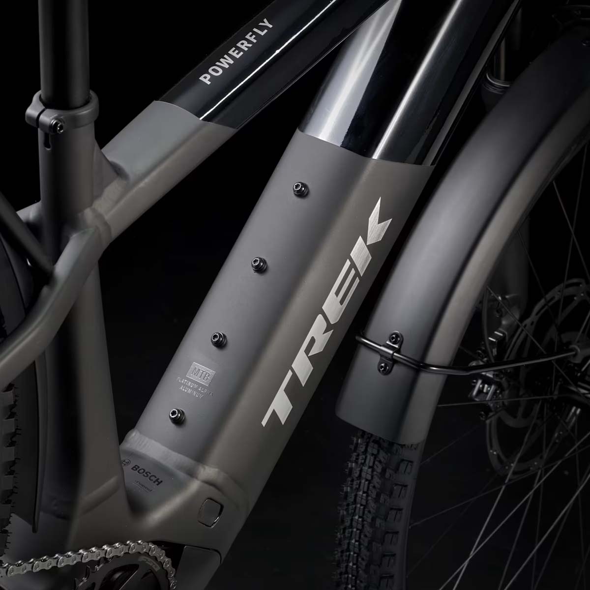 Trek sin Powerfly+ 4-modell er en elektrisk terrengsykkel som er klar for eventyrsykling – uten å tømme lommeboka. Den robuste aluminiumsramma gir deg et kraftig løft takket være en Bosch Performance Line CX motor med et massivt 800 Wh batteri.