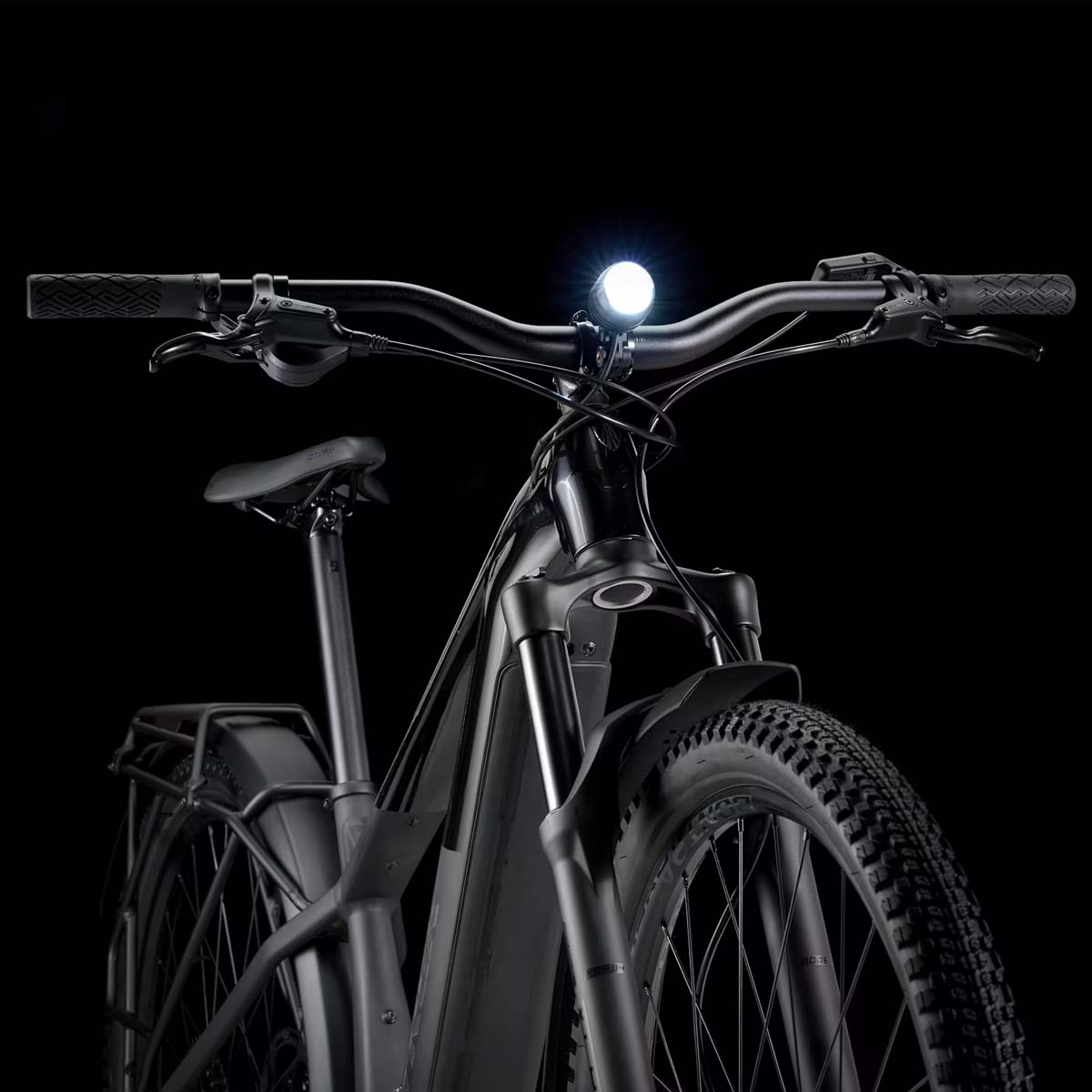 SR Suntour dempegaffel øker selvtilliten i terrenget og demper humper, mens 10-girs Shimano CUES gir rene girskift. Elsykkelen kommer med inkluderte skjermer, lykter, bagasjebrett bak og støtte; slik at du er klar for ditt neste sykkeleventyr.